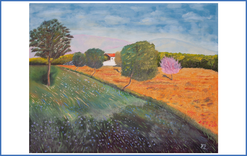 Warmes Land, Ölfarbe (50x40 cm oder als Quadrologie) -