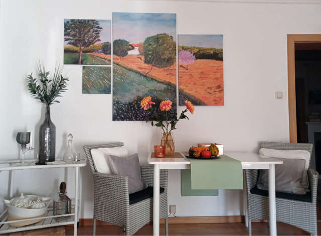Die ORIGINAL-Bilder werden für den Druck auf Leinwand professionell bearbeitet und digitalisiert. So kann ein Gemälde auch farblich, individuell auf die Inneneinrichtung, einer Wohnung oder eines Geschäftsraumes abgestimmt werden. Es können aber auch Gemälde zu "Quadrologien" werden: Ein Gemälde wird so zu vier einzelnen Leinwänden, die dann an der Wand zu einem Gesamtbild zusammengefügt werden. In der entsprechenden Größe, ist die Wirkung dieser Idee der Quadrologie ein Blickfang. Tauchen Sie ein in diese, meine bunte Welt!